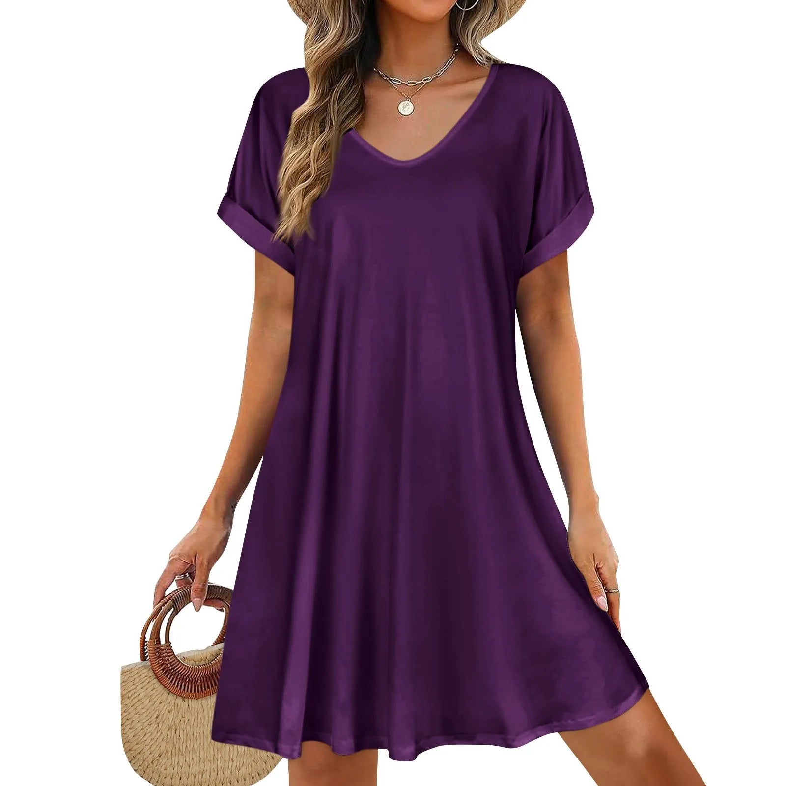 Women’s Loose Swing Summer T-Shirt Dress – Short Sleeve Casual Beach Sundress