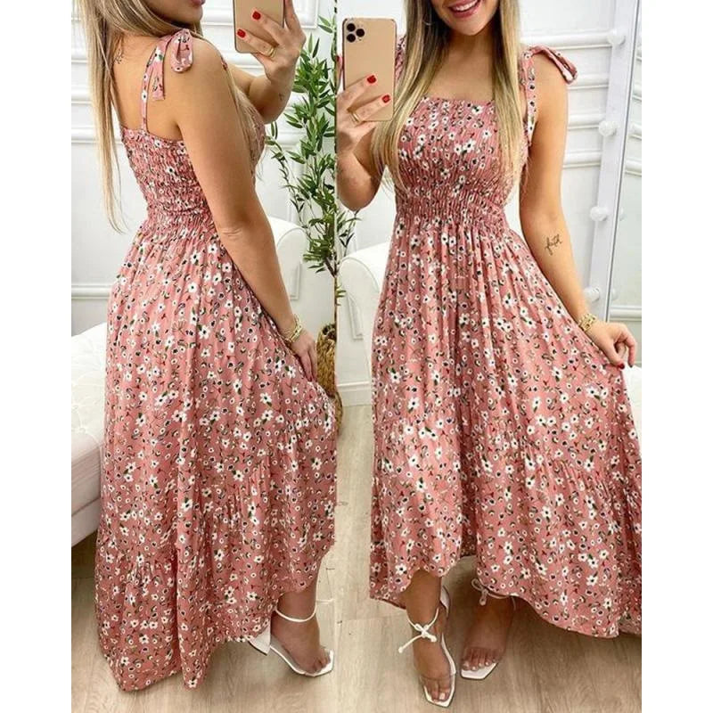 Women’s Floral Tie-Strap Maxi Dress – Sleeveless Smocked Bodice & Summer Dress