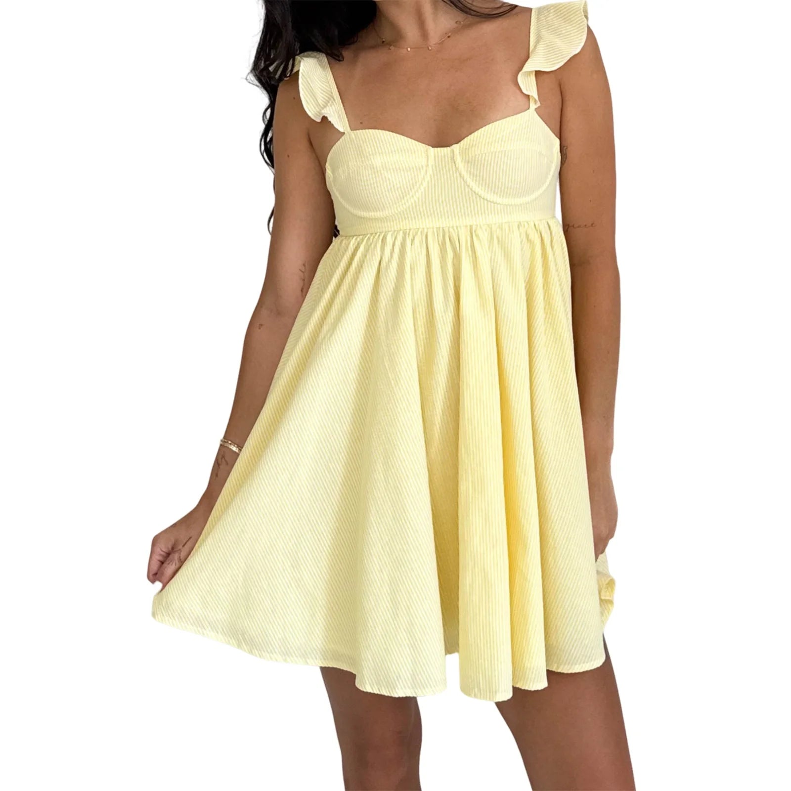 Step into effortless summer style with this charming floral ruffle-strap mini dress. Designed with a flattering V-neckline, soft sleeveless ruffle straps, and a breezy A-line silhouette, this dress delivers the perfect balance of comfort and feminine elegance.
